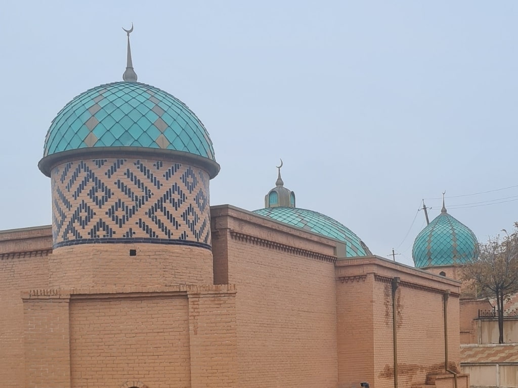 The monument is composed of three adjacent structures: the square-plan main tomb, the polygonal body rising above it, and the side volumes. Repeated “Allah” inscriptions in red and dark purple on the brick surfaces give the structure its unique character. Construction of the tomb began in 1722, was completed in 1732, and a comprehensive restoration in 2004 brought it to its current appearance.