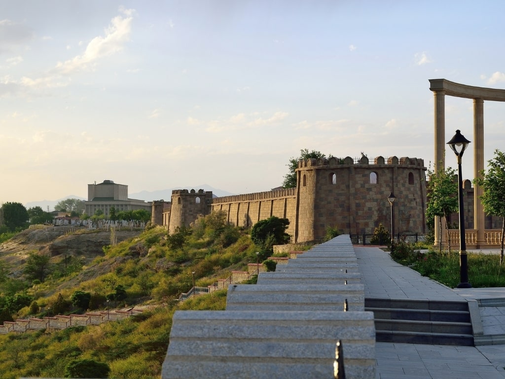 Nakhchivan Fortress or Kökhna-Gala, more locally known as Yezidabad, is a medieval fortress southeast of the city and represents the oldest settlement in Nakhchivan. It is from these foothills that the current urban fabric extends. From it, you can make out both Nakhchivan’s city center and the Aras Reservoir, some 5 km away, in the same view.