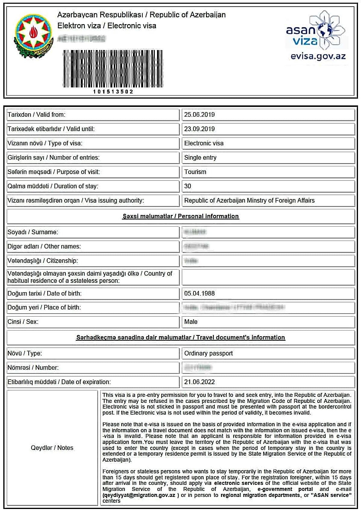Sample visas for entry into Nakhchivan.