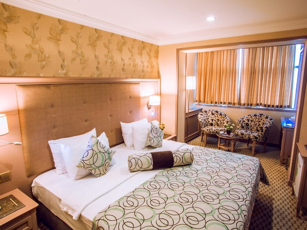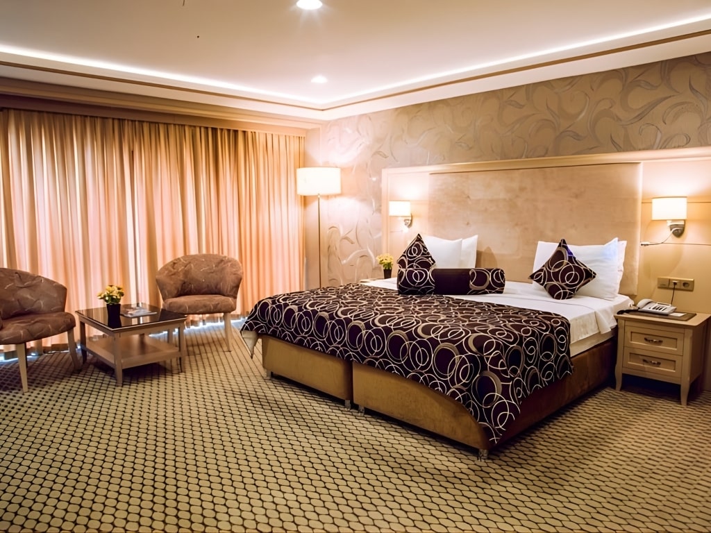 Tabriz Hotel Nakhchivan offers standard, deluxe, and suite room options. Room capacity ranges from two to four people, making it suitable for couples, families, and guests traveling with business colleagues.